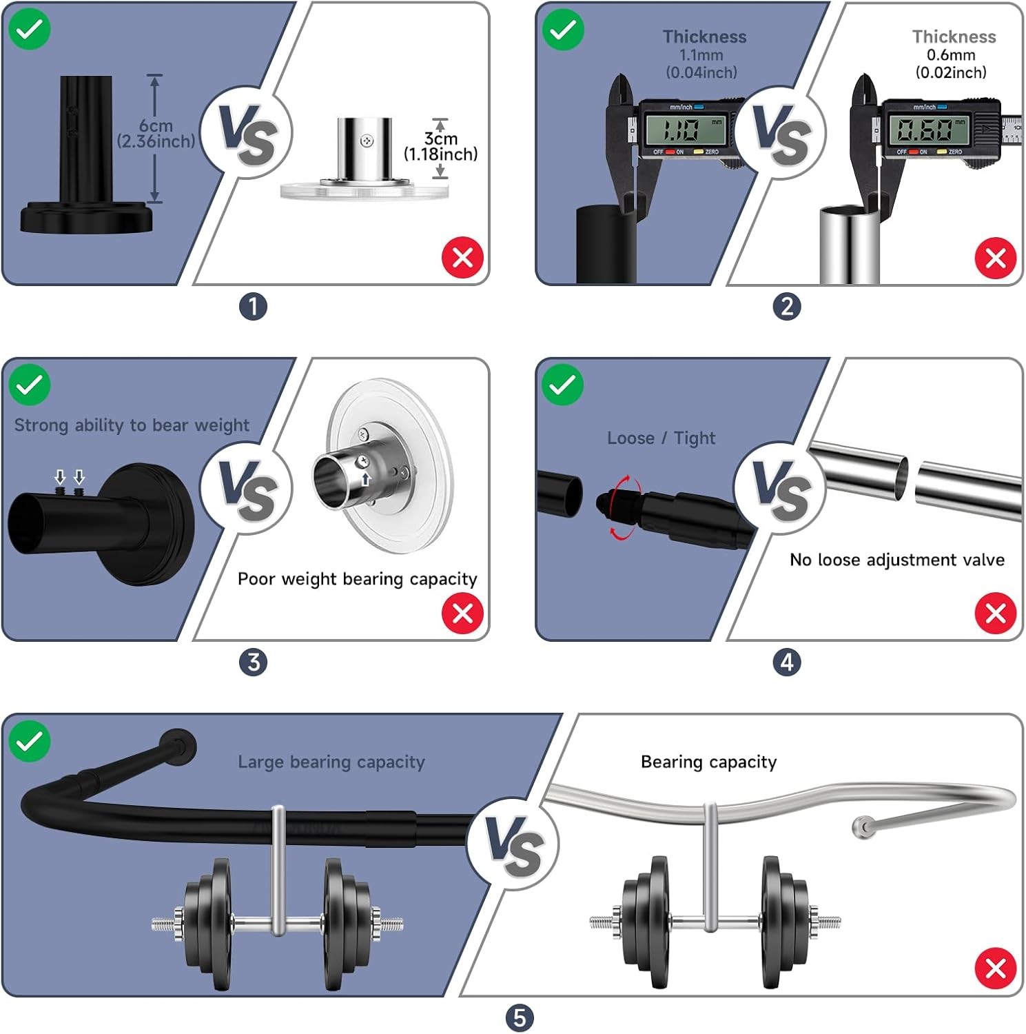 About this item Applicable size: U shape shower curtain rod size: 29.5"x(59"-75") x29.5", L-shape shower curtain rod size: 29.5"x(59"-70.8"), it can be spliced and used according to your usage scene. Premium material: The shower rail is made of high-quality 304 stainless steel, it does not corrode or rust even in wet environments. The rods have been polished and the appearance is bright and smooth, suitable for different decoration styles. High quality base: The curved shower curtain rod are very stable in both U-shape and L-shape, thanks to the solid base of all rods and the thickened and lengthened bracket, it will not sag and bend, effectively improving the load-bearing capacity of the corner shower curtain rod, which can be Withstand 5-10KG, without ceiling support. Free 24 shower curtain rings: Buy the adjustable shower curtain rod with 24 stainless steel shower curtain rings, No need to buy extra. Quick installation: The curtain rod is more stable when punched. We provide detailed instructions and it can be installed quickly in just 10 minutes. Adapt to Various Scenarios:The variable U rod can flexibly adjust the size to fit corner spaces. It can be applied to fitting rooms in clothing stores, cloakrooms, bathrooms, bathtubs, outdoor showers, apartments, etc. Brand: Color: Black Product Dimensions: 29.5"L x 75"W Material: Stainless Steel Mounting Type: Wall Mounted Item Weight: 2 Kilograms