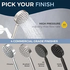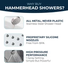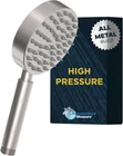 Showers® ALL METAL Hand Held Shower Head - BRUSHED NICKEL 2.5 GPM High Pressure BUILT TO LAST A LIFETIME - Unlike cheap plastic bathroom shower heads that easily break and leak, HammerHead Showers are ALL METAL and reinforced with COMMERCIAL-GRADE FINISHES that never flake or rust. Bring a new level of versatility and comfort to your shower. With a 4 inch spray face and custom silicone nozzles, the water is sculpted into rain shower like rainfall drops for immersing coverage. Perfect replacement handheld shower wand for broken plastic shower handles or to pair up with a sleek slide bar or wall mount shower holder. Universal 1/2" NPT thread size makes it a breeze to unscrew your old hand held from your shower hose and screw this new one on. 4.0 inches x 9.0 inches x 1.0 inches. Weight: 11.3 oz Item model number 1F-HHO-BN Item Package Quantity 1 Style Transitional Finish Brushed Number of Jets 1 Material Stainless Steel Part Number 1F-HHO-BN Color Brushed Nickel Flow Rate 2.5 Gallons Per Minute Batteries Required? No Number of settings 4 Item Weight 11.3 ounces Efficiency user-controlled Shape Round Batteries Included? No Installation Type Wall Mounted Setting Type Rain Finish Type Brushed Product Dimensions 9 x 4 x 1 inches