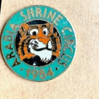 Big Cat Shrine Circus Souvenir Hat/Lapel Pin Collection Gold Lion from 1996 is 1 3/4" long and 1" tall Tiger is from 1984 and is 1 1/4" diameter Panther is from 1983 and is 1 1/4" diameter.