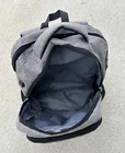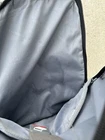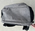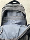 Lockable backpack with lots of pockets. In good condition - no hole or snags, all zippers work and no odor. Minor signs of use include surface dirt on the exterior bottom that blends with crosshatch design and not easily visible. One divider has some staining as if something spilled. Did not attempt to remove either. See photos.