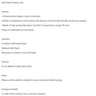 You may also like Unpainted ABS Rear Tail Seat Side Cover Fairing For Honda CBR500R 2019-2021 88.85 USD Free shipping Aluminum Shifting Gear Lever Stabilizer Green For Kawasaki Zx-25R Zx 25R 2021 16.85 USD Free shipping Motorcycle CNC Swingarm Spool Adapters / Mounts For Honda CBR250R 2011-2013 Gray 39.85 USD Free shipping Brake + Clutch Reservoir Caps Red For MV Agusta Dragster 800 RC RR SCS Rosso 27.85 USD Free shipping Front Horn Cover Decoration Trim For Vespa Sprint 300 GTS 300 HPE GTV Yellow 17.85 USD Free shipping M5 THREAD ZINC PLATED SPRING SPIRE C CLIPS U NUTS SPEEDCLIPS CHIMNEY 5MM QTY 50 16.85 USD Free shipping Steering Horn Cover fairing For VESPA Sprint Primavera 125/150 2014-2021 Yel 41.85 USD Free shipping Side Tank Traction Grip Knee Pads Protector For Honda CBR650F 2014-2021 15.85 USD Free shipping Rear Tail Light Seat Cover Fairing For Suzuki GSX-S 1000 2015-2020 Black 48.85 USD Free shipping Injection Fairing Kit Bodywork Plastic ABS fit For BMW S1000RR 2019-2022 739.0 USD Free shipping Gas Tank Side Trim Cover Panel Fairing Cowl For Suzuki GSXR1000 2005-2006 K5 24.85 USD Free shipping Headlight Fairing Windshield Cover For Yamaha XVS 950 SPEC BOLT 950 2014-2020 AV 88.85 USD Free shipping Side Frame Fairing Cowl Feature: 1:Enhancing the design of your motorcycle. 2:Perfect complement to the existing side fairing to have the bike laterally closed and compact. 3:Made of high quality ABS plastic (not PVC) to guarantee a longer life time. 4:Easy to install,without instructions. Specifics: Condition:100% Brand New Material: ABS Plastic Placement on Vehicle: Front Left Right Fitment: Fit For BMW R1250GS 2018-2023 Not suitable R1250GS ADV Note: Please confirm whether suitable for your motorcycle before buying. Package Included: 2 x Side Frame Fairing Cowl ( as picture showed ) -About US Founded in 2012, VIPJQ have professional development and sales, and are involved in various products, providing customers with various high-quality products. Since its establishment, VIPJQ has always adhered to the service concept of "customer first" and the management concept of "pursuit of quality", and is committed to providing customers with high-quality original designs. We commit to provide you the best innovative, quality products & professional services with competitive prices. We value every customer, and we look forward to providing solutions for your business needs to help your business achieve its goals, please contact us immediately! We are all about you! We are a Japanese seller,but with large warehouse in USA. We are profesional on Auto Parts,Car Parts,Motorcycle Parts,3C,other hot sale items and so on. We aim to provide to customers high quality product and best service. -About Shipment&Returns The item usually will be dispatched within 3 days after you ordered.All are free shipping. And it usually takes 3-10 working days to delivery depends on buyers' address or other majeure on the way. If you are not satisfied with the items and want to return the item,we hope you could message us first,we will give you the return details, we think we could give you the best service to save your time and money.Thank you. -About Feedback&Customer Service If you are enjoy your shopping here,not only enjoy the items but also the service,we are appreciate you could give us a 5-star feedback. If you are not satisfied with the item,before you give us the negative feedback,we hope we could give you the best solution through our commutication. We think we could do it if you give us the chance.Thank you.