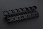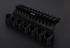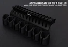 Keep your spare shotgun shells right where you need them with the Side Mounted Shell Holder with Picatinny Rail Mount. Built for use with Mossberg 500 and 590 Series shotguns, the shell holder accommodates up to six 12 gauge or seven 20 gauge shotgun shells. Available in two different sizes - one for 12 gauge shotgun shells and one for 20 gauge shotgun shells. The shell holder pairs with a 13 slot Picatinny rail mount that secures to the top of your shotgun. The rail mount is compatible with all Picatinny or Weaver standard scopes, red dots, and optics. The two piece design is built to be mounted together as a single unit. Shell holder or rail mount will not install as stand alone units using the included mounting hardware. Unit installs into the factory mounting holes of Mossberg 500 or 590 Series shotgun models with no additional gunsmithing required. Also compatible with Mossberg Shockwave, 535, 835, and 590a1 models. Please note that pre-1997 Mossberg shotguns were manufactured with a different mounting hole pattern and will require 6x48TPI screws (not included). Rail mount is machined from 6061 grade aluminum. Shell holder is crafted from lightweight polymer. All mount and accessory products are backed by a . Compatible with: Mossberg 500 Mossberg 535 Mossberg 590 Mossberg 590 Shockwave Mossberg 590a1 Mossberg 835 Not compatible with: Pre-1997 Mossberg shotguns | Requires 6x48TPI screws not included Mossbergs without pre-drilled and tapped receivers | Requires drilling and tapping receiver Mossberg Maverick 88 | Requires drilling and tapping receiver Mossbergs with Crimson Trace LS250 installed | Requires M4-.70 x 12 screws not included Mossberg 930 | Requires modifications Mossberg 500 Flex | Requires modifications Built for use with Mossberg 500, 590, and Shockwave Series shotgun models; Not intended for use with other shotguns models Shell holder available in two sizes - 12 gauge saddle accomodating up to six 12 gauge shells and 20 gauge saddle accomodating up to seven 20 gauge shells Unit installs into the factory mounting holes of Mossberg 500 / 590 / and 590 Shockwave Series shotgun models with no additional gunsmithing required All accessory products come with a
