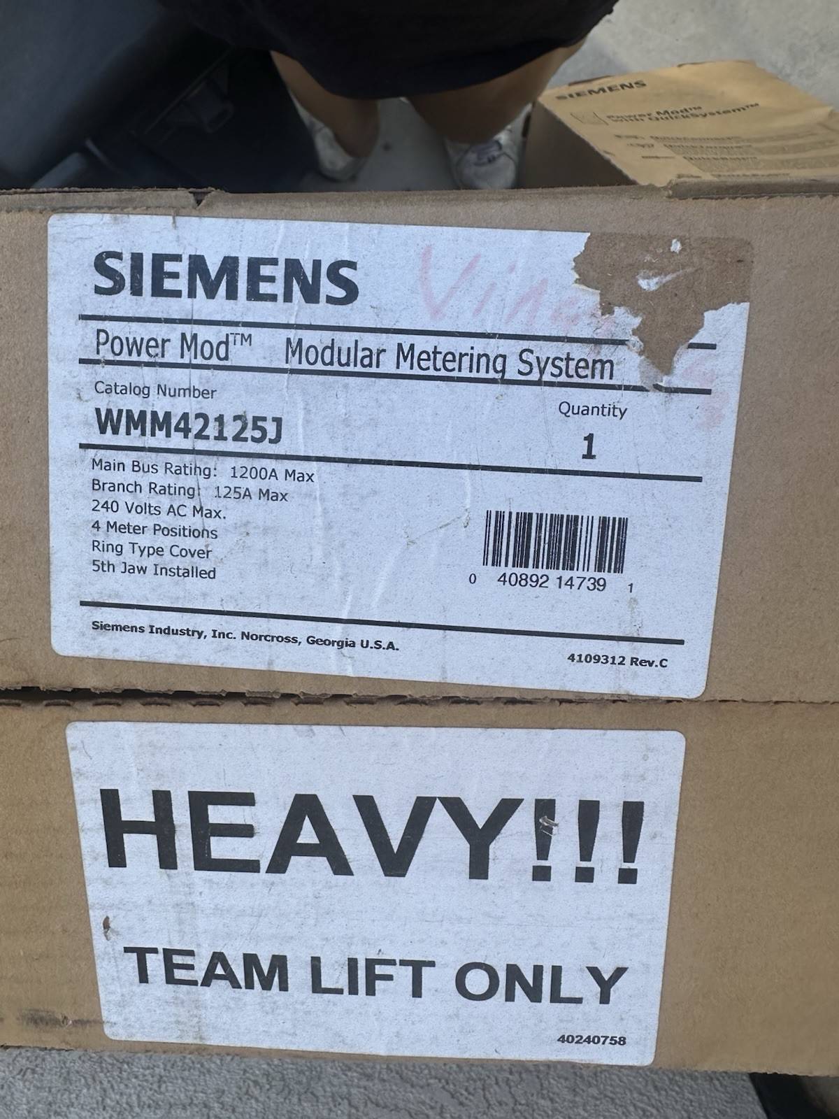 The Siemens WMM42125J Residential Meter Stack Power Mod is a gray metal vertical power mod designed for exterior use. It has a maximum amperage of 125A and is suitable for any room. With two poles and an analog/mechanical control style, this meter stack is compatible with Ring for smart home integration. The rectangular box shape and 120/240 volt voltage make it versatile for various electrical setups. The Siemens brand ensures quality and reliability in electrical equipment and supplies.