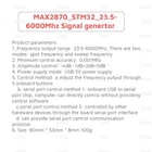 1. Product Description MAX2871, 90*160 (0.96inch) OLED screen, CH340G USB for serial communication. Yes The following functions are available. (1) 23.5MHz to 6000MHz frequency transmission; (2) Accuracy: 0.01MHz; (3) Power output of -4dB, -1dB, 2dB, 5dB: (4) Support frequency sweep: (5) Support serial port communication, and control the start frequency and end frequency of the sweep frequency selection by the host computer and serial port. (6) Channel 1 (CH1) supports -4db, -1db, 2db, 5db Channel 2 (CH2) supports power output from -15 to -25 (7) Support USB serial port control, sweep frequency, point frequency and other operations (8) Support USB power supply and 5V 1A lithium battery power supply 2. Point frequency description Use the left and right buttons to control the left and right movement of the coordinate point, and use the up and down keys to change the frequency and select the channel OK key to enter and exit the point frequency interface 3. Sweep command Use the left and right keys to move the cursor left and right, use the up and down keys to change the start and end frequency, as well as switch modes and switches on and off 4. Sweep description This function needs to set the start frequency and end frequency of the productNote: If the start frequency is less than the end frequency, the operation will not be performed, and when the step size and interval time are not set, it will not be executed, and the start frequency, end frequency, step size and interval time of the product should be set first during use. Then turn on the enable switch to control. The product now only opens the power setting of channel 1 in sweep mode, and the sweep power of channel 2 will be upgraded in the future.