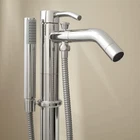 Signature Hardware 926635 Caol Floor Mounted Tub Filler- Includes Hand Shower About Signature Hardware 926635: The Caol Freestanding Faucet fittingly complements a sleek contemporary tub with the added benefit of a hand shower. This tub filler's minimalist design is accented by an angled lever and spout. The faucet's tubular hand shower is connected with a long, flexible hose that allows for convenient rinsing. Signature Hardware 926635 Features: Floor mounted / freestanding tub filler Covered under Signature Hardware's limited lifetime warranty Constructed of brass, ensuring durability and dependability Brass is highly resistant to corrosion and an excellent choice to withstand high temperatures Coordinates with products from the Caol line seamlessly Freestanding design mounts to wood or tile floor with included mounting plate Includes hand shower - single function hand shower handy for rinsing down the tub or just rinsing off after a bath Integrated diverter included - located on the tub spout Includes flexible supplies for under-floor hookup Underfloor access is required for proper installation - Installation on a concrete slab will require cutting and concrete removal Signature Hardware 926635 Specifications: Height: 37-1/4" (bottom to top) Spout Height: 33" (deck to spout outlet) Spout Reach: 8-1/4" (center of faucet body to center of spout outlet horizontally) Hand Shower Hose Length: 60" Shipping We offer FREE shipping on all orders! We ship within Three business days of payment, usually sooner. We use a selection of shipping services such as UPS, FedEx, USPS etc. We only ship to the lower 48 states, no APO/FPO addresses or PO Boxes allowed. Local pickups and combined shipping options are not provided at this time. Return You can return a product for up to 30 days from the date you purchased it. Any product you return must be in the same condition you received it and in the original packaging. Please keep the receipt. Payment We accept payment by any of the following methods: PayPal Please pay as soon as possible after winning an auction, as that will allow us to post your item to you sooner! Feedback Customer satisfaction is very important to us. If you have any problem with your order, please contact us and we will do our best to make you satisfied. Contact Us If you have any queries, please contact us via ebay. We usually respond within 24 hours on weekdays. Please visit our eBay store to check out other items for sale! Thank you for shopping at our store.