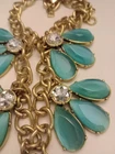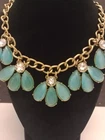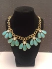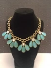 This is a stunning Signed Banana Republic Necklace featuring a teardrop pendant shape beautiful Blue Petals. The Necklace has a Lobster Closure and measures 19 inches in length, making it a striking Statement piece. The design exudes a sense of Beauty and elegance, perfect for adding a touch of style to any outfit. S162/25