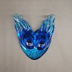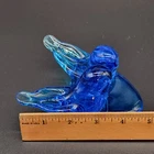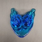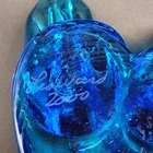 These little bluebirds are here to bring happiness—or at least some chirpy charm to your shelf. Leo Ward's 2000 masterpiece, now your treasure. • Crafted by Leo Ward, signed 2000 • Features two bluebirds on a heart base • Vibrant blue art glass design • Approximate height: 2.75 inches • Smooth, glossy finish Used but in very good condition. No chips but a few surface scratches on the underside of their wings that doesn't affect the overall aesthetics. See photos for details.
