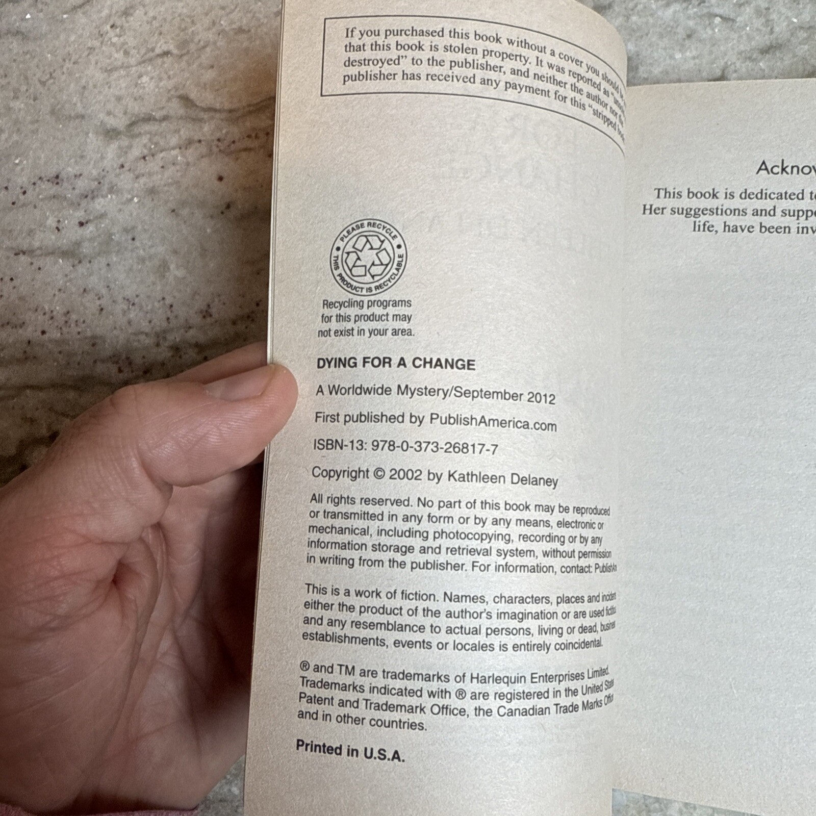 This is a signed first edition of "Dying for a Change" by Kathleen Delaney. The book is in very good shape and will be a great addition to any collection. The author has created a compelling story that will keep readers on the edge of their seats. The book is written in English and is perfect for those who love a good mystery.