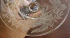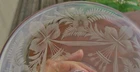 VINTAGE etched glass condiment dish with feet; no damage; lgth 12"; wid 7 1/2"