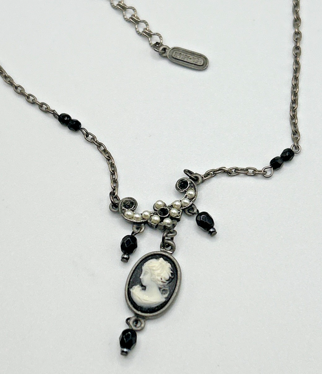 Signed Necklace Lot Ben Amun Silver Black Cameo + Larissa Loden Brass Abacus Pendant Necklace Two cute signed designer necklaces. Different looks, different styles. NOTE: in the picture above, the Ben-Amun necklace is facing backward so the faux pearls aren't visible until a later picture when it is turned around. Ben-Amun silver tone necklace with faux pearls, black crystal, and black cameo pendant. Larissa Loden Brass Necklace with rectangular abacus style pedant Thank you for supporting my small business. CozyVintageJewels offers charming vintage jewels from Pennsylvania, New Jersey, and New York estates (and beyond) at a reasonable price. I like to find special pieces that tell a story. Please save me to your list, and come see what's here tomorrow! I'm happy to offer competitive prices on multi-item purchases. Thanks for shopping, Jen Cozy Vintage Jewels