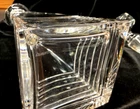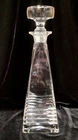Overall excellent pre owned condition with no chips, cracks, cloudiness, or wear ~ appears unused. Measures 13 1/2" tall to top of stopper. Features square design decanter with deep "step" or horizontal cuts in graduated pattern. Signed on bottom as shown in photos. Had 4 tiny rubberized feet to protect your surfaces. WILL BE PACKAGED WITH GREAT CARE TO ENSURE SAFE ARRIVAL!! Add a touch of luxury to your bar collection with this stunning Tiffany & Co Crystal Decanter. This 13" square cut decanter features a beautiful horizontal cut pattern and is made of high-quality crystal material in a clear color. The decanter comes with a lid/stopper, ensuring a secure and stylish seal. This original art glass piece is perfect for collectors and enthusiasts alike, with its vintage design and excellent production style. Whether you're using it to store your favorite liquor or as a decorative piece, this Tiffany & Co decanter is sure to impress.