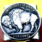 Circulated Buffalo Indian nickel coin (Buffalo showing side) adjustable handmade ring. Comes with in gift box. I can make Indian head showing side if you prefer... Please let me know when you purchase. Ring is brass base 6 to 11 adjustable size. It adjust to most fingers, have no sharp ends or poky parts. A nice platinum finish Please check my other items; Ring size is adjustable 6 you may open the ring up to 11 size..... I make cuff links , earrings, bracelets and necklaces with same coin if you interesting.