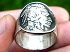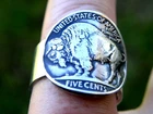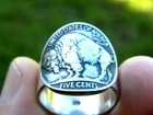 Thank you for interesting Made in USA. Authentic 1936 Buffalo Indian Nickel coin Buffalo showing side. I can make Indian showing side if you prefer. Rare dates are different price. Coin is 21 mm diameter . It is same size as 5 cents nickel coin. I soldered .925 sterling silver 10 mm wide flat ring. Available size are 7 or 8 or 9 or 10 or 11 or 12 Customize size are available 7 1/4 to 13 size. Please let me know your customize size when you place an order. Please check my other items. I make necklaces, ear rings, cuff links, and bracelets with authentic coin too.