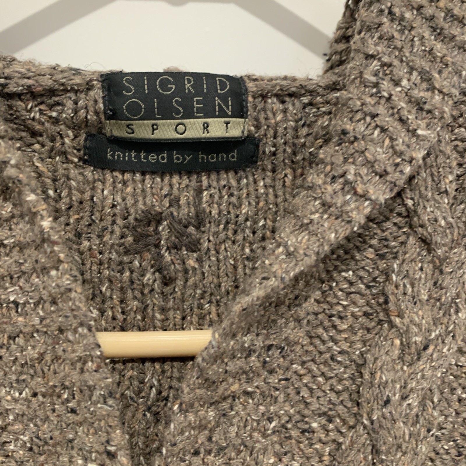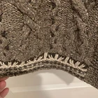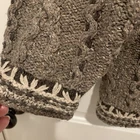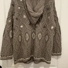 The Sigrid Olsen Sport Knitted By Hand Hooded Cardigan in Browns is a stylish and unique piece perfect for those who embrace a more sporty and outdoor-inspired aesthetic. Made with high-quality knit fabric, this cardigan features long sleeves, and a hood, making it both functional and fashionable. The brown color adds a versatile touch to any outfit, while the nature-inspired pattern and gorpcore style give it a trendy edge. Hand wash only to maintain its quality, this cardigan is a must-have for any outdoor enthusiast. Leaves embroidered details adorn those beautiful sweater. Sweater is a nice weight. 21” pit to pit 26” length from shoulder 57% silk 30% nylon 13% wool