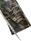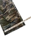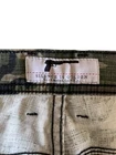 The product is a pair of men's Silence Is Golden camo pants in size 36. Made in the USA in Los Angeles, these pants feature a zip closure, flat front, and button accents. The classic straight leg style is perfect for casual occasions, with a green camouflage pattern standing out. Crafted from a comfortable cotton blend fabric, these pants also include pockets for added convenience. A timeless and stylish addition to any man's wardrobe, these pants are a must-have for those looking for a blend of classic style and modern comfort.