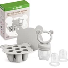 [Safe Way to Introduce Solids to Baby] The JEXFUN Bear fresh fruit food feeder is the perfect way to introduce solids to babies. This innovative device features a silicone pouch with small holes that only allow small, easily digestible pieces of food to pass through, eliminating the risk of choking. [More Cnvenient - Baby Food Feeder + Popsicle Molds!] This Set of Bear baby food freezer tray + baby fruit food feeder is the perfect solution for quick meal prep and feeding. With this baby popsicle molds you can prepare baby food, purees, breastmilk, and more in batch and in advance. Then you just put them into baby feeder, everything is done. Pefect for teething babies with sore gums. [Easy Baby Self Feeding] This Bear pacifier feeder makes it effortless to encourage your baby's self-feeding journey. Just insert organic baby food, fresh fruits, purees, or frozen fruits/breast milk pieces into the feeder, and watch as your little one happily sucks on it, fostering independence and promoting self-feeding skills in a baby-led weaning approach. With heartfelt care, nurturing babies' growth. [Food Grade Silicone - No Need to worry about Material] The Bear baby food storage containers and fruit pacifier feeder are made of 100% food-grade silicone, ensuring that they are safe for baby food storage and feeding. They are free from BPA, PVC, and phthalates, providing peace of mind for parents who prioritize their baby's health and safety. Flexible and naturally non-stick silicone body makes popping food cubes out of your baby ice cube tray a breeze. [Easy to Clean] The package includes 1 baby food feeder pacifier, 1 ice nibble freezer tray, and 2 additional replacement pouch, allowing you to store a variety of food simultaneously. This enables your baby to enjoy a wider range of delicious meals. Besides, Cleaning up after feeding is a breeze with the baby feeder and nibble tray. Dishwashers safe, microwave, boiling and steam safe. Suitable for baby 4m+. Before the first use, it is advised to put the tray into the boiling water. Product Description The Safe, Easy Way to Start the Solids Journey-JEXFUN Fresh Fruit/Food/Breastmilk Feeder JEXFUN Baby feeder can be also used as a teething popsicle mold, make a small size and perfect shaped teething popsicle for babies, you can put breastmilk, purees, yogurt, juices or some baby food, or fruit mixed with milk. Baby chews and sucks through the silicone sac with small holes, no risk of choking, safe for toddler self feeding. Perfect Sized frozen popsicle for toddlers Easy to freeze breastmilk, fruits, juices or purees Big Bear head shaped handle, easy to hold for little hands Feeder sac with small holes, No Risk of Choking Suitable for baby 4m+ Benefits of Using a Baby Fruit Feeder Pacifier 1.Safe Introduction to Solid Foods: Baby fruit feeder pacifiers provide a safe way to introduce solid foods to babies, reducing the risk of choking. The small holes in the feeder only allow small, digestible pieces of food to pass through. 2.Nutrient Intake: They help ensure babies get the nutrients from fruits and vegetables early on, aiding in their overall growth and development. 3.Teething Relief: Many baby fruit feeders can double as teething toys. Parents can place chilled or frozen fruits inside the feeder to soothe a teething baby's gums. 4.Encourages Self-Feeding: These feeders encourage independence as babies learn to hold and use them on their own, promoting fine motor skills and hand-eye coordination. 5.Reduces Mess: Using a fruit feeder pacifier minimizes the mess associated with feeding purees or solid foods directly, making cleanup easier for parents. 6.Variety of Textures and Flavors: They allow babies to explore different textures and flavors safely, helping them become more adaptable to various foods as they grow. 7.Portable and Easy to Clean: Most baby fruit feeders are designed to be easy to disassemble and clean, often being dishwasher safe, which adds to their convenience. Baby fruit feeders are portable and can be used on the go, making them a handy tool for parents to carry in their diaper bags. 8.Encourages Healthy Eating Habits: Introducing fruits and vegetables through a feeder can help instill healthy eating habits from a young age, making babies more likely to accept these foods as they grow older. Introduce Solids Safely & Prep Meals Effortlessly Safe to Introduce Solid Food The fruit food feeder allows only the small digestible pieces of food to pass through the 2mm feeding holes, eliminating the risk of choking. Easy to Pop Out Make Perfectly Sized Frozen Food Portions. Easy to Clean and No Small Parts Baby fruit feeder is designed with inside silicone sealing ring and valve, that fit tightly as well as no extra locks, prevent choking risks. Ideal for Baby Shower Gifts, Baby Led Weaning Supplies, Baby Registry Search Gifts, Christmas Gifts... Celebrate the joy of giving with a practical and thoughtful gift that supports a baby’s development. Ideal for Christmas, birthdays, or any special occasion, this combo is a wonderful addition to any baby registry. Make feeding time fun, safe, and easy with our Baby Fruit Food Feeder & Mini Freezer Nibble Tray Combo – the ultimate gift for healthy beginnings.
