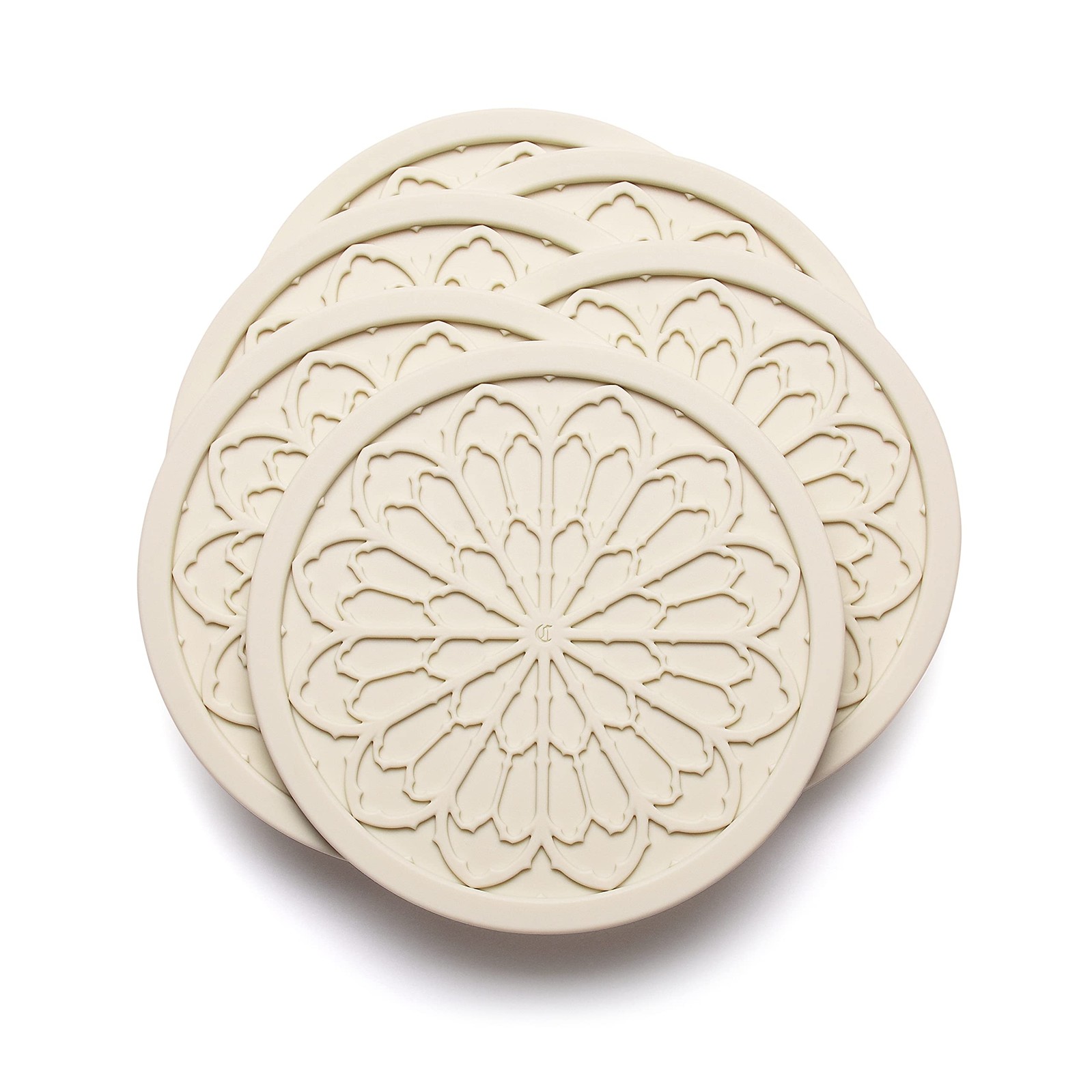 Silicone Coasters for Drinks - 6 Pack 4" Drink Aesthetic Cream Description Features: [GOTHIC DECOR FOR HOME & KITCHEN] Inspired from mid century art, this silicone drink coaster set will blend in perfectly with your gothic room decor. A complementary to your coffee cup for the coffee table and gothic kitchen accessories for your kitchen decor. The gothic rose window pattern will give a medieval look to your home decor and these cute coasters will be ideal wine accessories for your dining table set. [4“ COASTER DESIGN WITH PRECISION DETAILS] 4" diameter enables these cool coasters to fit your beer, whiskey, wine, champaign and cocktail glasses, coffee mugs, tea cups, tumblers and flasks. Ceaseless pattern design makes the coasters sturdy, yet light weight. Precision details and the soft touch finish of premium silicone material add to the quality. Ideal kitchen gifts for the kitchen table in your new home decor. [NO WATER RINGS AND SCRATCHES ON YOUR FURNITURE] Raised pattern design with edge rim provides room to catch condensation and spills from your cold drinks, keeping moisture and water rings off the table. Protection against scratches for your furniture, thanks to soft silicone material and smooth backside surface. Keep your wood, granite, glass, soapstone, sandstone, marble, stone and stainless steel table tops secure with Coasterfield. [SLIP RESISTANT AND SURFACE FRIENDLY SILICONE MATERIAL] Slip resistant backside ensures a nice grip, ensuring these coasters stay firmly in place on any surface, keeping your drinks from sliding around on your office desk. They hold your glasses securely in place, while they won't stick to them. These unique coasters also protect your wooden desk and night stands against heat from your hot tea cup or coffee mug. [MULTI PURPOSE USE AND EASY CLEANING] Solution for stuck jar lids or bottle caps, as anti skid mat for your cutting board or mixing bowl, heat resistant grips for holding hot pans and pots, spoon holder, table pad or to place any utensils on, placemat, trivet or even as key holder to protect surfaces from scratches. Cleaning is so easy, just wash them under the sink or throw into the dishwasher. These wine coasters will be a stylish addition to your wine glass set for gothic home decor clearance and will match your cool room accessories. Cute home décor accents for kitchen desk, dining room table, patio table and also a stylish addition to restaurant, pub or bar decor. Ideal goth items for office decor and perfect choice to go with tea accessories. Product Details: Handling We will ship all orders within 3 business day of payment. Delivery We Do Not Ship Outside of the Continental US. Return Policy All items qualify for returns within 30 days of receipt. Buyer is responsible for return shipping on any item that is not damaged. Feedback We take our reputation seriously, we buy and sell online, so we understand the value of trust. If you are unsatisfied with your order, please contact us and we will work with you to resolve it to your satisfaction.