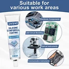 Silicone Electronic Adhesive – Professional-Grade Insulating & Waterproof Sealant Protect, seal, and insulate your electronics with high-performance silicone adhesive designed for durable circuit protection. Key Features: High Adhesion & Fast Drying: Professional-grade formula, dries in 15 minutes for quick application. Waterproof & Dustproof: Seals components against moisture, dust, and environmental damage. Temperature Resistant: Withstands -50°C to 200°C , ideal for automotive electronics, industrial equipment, and high-temperature applications. Electrical Insulation: High dielectric strength protects circuits from short circuits and leakage. Elastic & Flexible: Forms a soft, rubber-like coating after curing, relieving thermal stress on components. Super Flowability: Smooth formula spreads easily, even in humid conditions, without leaving buildup or air bubbles. Applications: Circuit boards Electronic components LED lamps Household appliance control boards Automotive electronics Industrial equipment How to Use: Clean the Surface: Remove rust, dust, oil, and other contaminants. Apply the Glue: Unscrew the cap, squeeze the adhesive evenly onto the surface, and press components together if needed. Curing: Allow parts to cure naturally. At room temperature (~25°C, 55% humidity), the surface cures in 24 hours to a depth of 2–4mm. Deeper areas may require additional time; curing slows at lower temperatures. Important Notes: Thickness Control: Avoid overly thick layers to prevent heat buildup; too thin may reduce protection. Bubble Prevention: Stand still or vacuum degas before coating. Adhesion Issues: Ensure surface is clean; use primer if needed. One bottle of Silicone Electronic Adhesive is all you need to protect, insulate, and waterproof your circuits .