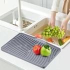 Silicone Dish Drying Mat for Kitchen Counter, 15.8" x 13", Grey Product Details Brand: TIKNIK Size: 15.8" x 13" Material: Silicone Item Weight: 0.5 Kilograms Color: Grey Indoor/Outdoor Usage: Indoor Is Stain Resistant: Yes Product Care Instructions: Hand Wash,Dishwasher Pattern: Solid Shape: Rectangular Product Dimensions: 15.8"L x 13"W Number of Pieces: 1 Water Resistance Level: Water Resistant Is Autographed: No Model Name: Grey-1pc-L Item Weight: 1.1 pounds Manufacturer: TIKNIK Country of Origin: China Item model number: Grey 1pc Quick Drying Mat: TIKNIK dish drying mat measures 15.8" x 13", where washed dishes can be placed for air drying. The folding, raised and innovative design of the quick dry dish mat allows air to circulate under the dishes,and features unique diagonal ridges to easily remove moisture, and a specially designed rim that lets water drain directly into the sink. This keeps your countertops dry and clean, and says goodbye to wet countertops. Anti-slip & heat-resistant: TIKNIK non-slip easy clean sink mat has an anti-slip effect, which prevents tableware, vegetables, fruits and glassware from sliding off. It is also an excellent heat-resistant silicone dish drying mat that protects it from high temperatures up to 450°F/230°C, while protecting countertops and tables from hot pots or electrical appliances. Food-grade silicone material: TIKNIK silicone drain mat is made of environmentally friendly food-grade silicone, does not contain BPA, is durable, soft, heat-resistant, non-slip, foldable and not easy to deform, so you have clean and healthy tableware. Enjoy the peace of mind of a cleaner and more hygienic kitchen space every time you use it. Multifunctional mat: TIKNIK multi usage drain pad can not only dry dishes on the kitchen countertop or beside the sink, but also can be used as a dish rack mat, refrigerator liner, heat-resistant mat, baking mat, non-slip mat for cutting boards, coffee pot mat, heat-resistant tripod for hot pots and pans, etc., so that you can have a different wonderful experience in different scenes. Easy to clean and store: TIKNIK silicone drying pad can be directly rinsed or brushed with water. There may be some water stains during use, just rinse with water or wipe with a damp cloth, and it will be as good as new. TIKNIK silicone mat is very soft and is designed with a hanging hole, so it can be rolled up or folded very convenient , or hung directly on the wall for storage, which is easy to save storage space.