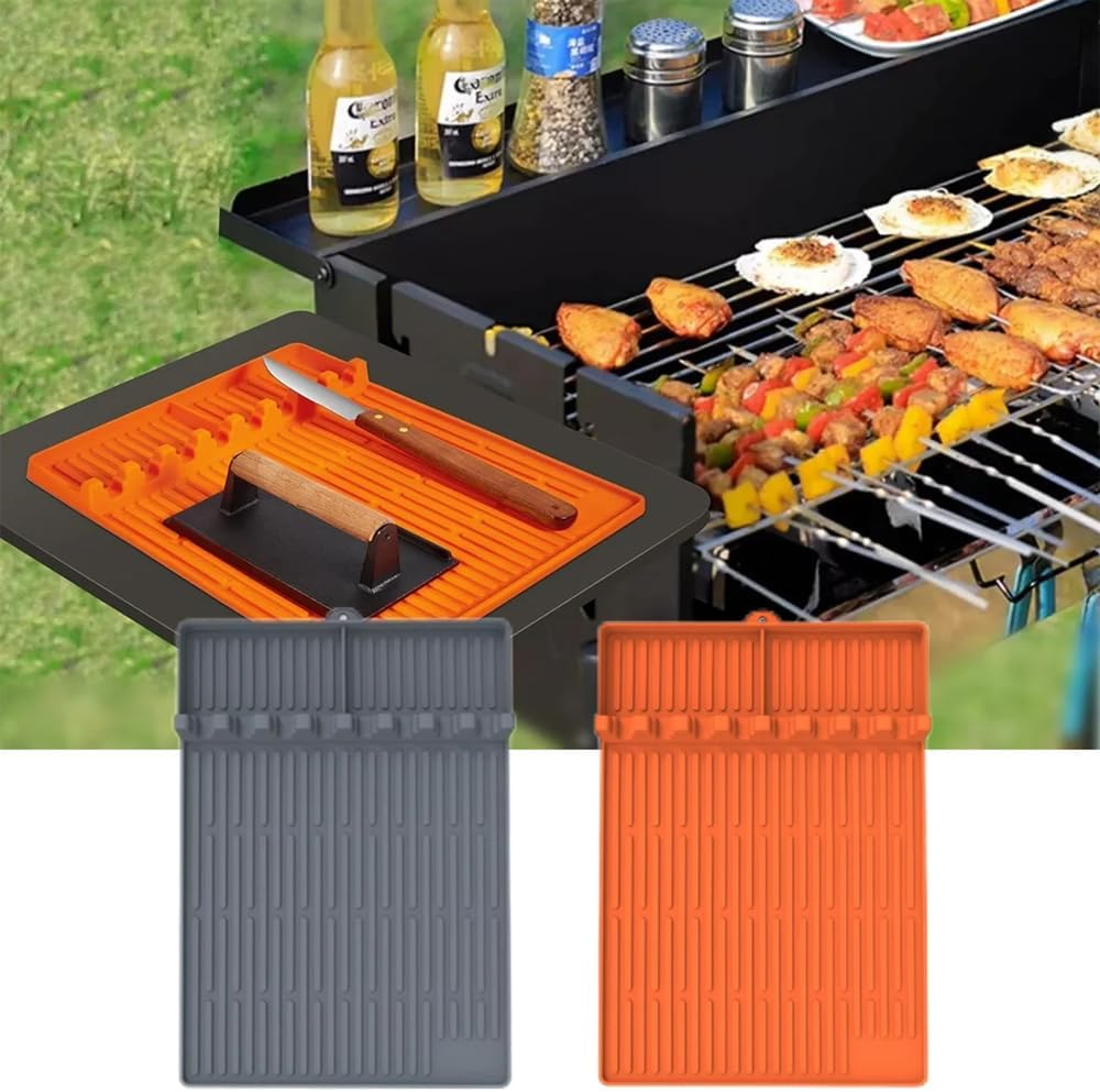 This silicone griddle mat is a game-changer for my Blackstone grill! It keeps my spatulas and tools organized, the drip pad catches messes, and it's super easy to clean. The sturdy silicone holds everything in place, and it fits perfectly on the side shelf. A must-have for any grilling enthusiast!