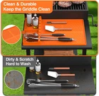 【Large Size Grill Side Shelf Mat】Package includes 1 x large size 16x11.5" silicone spatula mat with drip pad. is perfect for your grilling needs. Use it as a grill BBQ caddy seasoning jars holder or to keep multiple utensils like ladles and spoons organized on your barbecue grill side shelf. Keep your kitchen, cooking area, and countertop clean and tidy effortlessly.(NOT FIT FOR 22“ griddle.) 【Easy to Clean and Resistant】- Our silicone mat stands the test of time with its non-deforming design, ensuring longevity and ease of use. Cleaning is a breeze - just use soap and water, hand wash, or toss it in the dishwasher. Its heat-resistant nature makes it a reliable companion, even in high-temperature environments. 【Non-Slip and Anti-Scratch】During the grilling process, the silicone spatula mat prevents scratching the surface of the grill and protects its coating from damage. The non-slip texture of the silicone griddle tools mat for Blackstone side shelf ensures your utensils to stay firmly in place, reduces the risk of accidents and messes. This silicone grill tools mat is pefect for Blackstone side shelf. 【Food-Grade Silicone Griddle Mat】The grill mat is made of high quality silicone material to ensure that it can withstand high temperatures up to 450℉. Griddle tools mat can be placed near the stove or countertop to keep the heat out and help dissipate heat from grills, pots and pans. 【Your Kitchen's Best Friend】- Say goodbye to countertop chaos with this silicone spatula mat. Its easy-to-clean, heat-resistant, and versatile design makes it the perfect companion for every kitchen enthusiast. Unleash the full potential of your Blackstone side shelf with this essential addition. Product Description