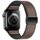 Silicone leather strap for Apple Watch Series 10 9 8 7 6 SE 40/44/41/45/46/49mm Features: ● 100% brand new high quality. ● Fashion and sports in one. If you want to go to a party or go out on a Friday night or work out at the gym for an active lifestyle, just show off your Apple Watch. ● Made of high-quality silicone and leather, it is durable, stylish and breathable. ● Double magnetic buckle reinforced design for a firmer fit. ● The high-quality material is soft and comfortable, and it fits the wrist closely. ● As with all Apple Watch bands, you can pair this band with any Apple Watch case of the same size. ● Suitable for slim size: > 38/40/41/42mm Size: Fits 5.12"-7.28" (133mm-190mm) wrists > 44/45/46/49mm Size: Fits 5.7"-8.66" (145mm-220mm) wrists Compatible: > Available on Apple Watch Ultra / Ultra 2 > For Apple Watch Series 9 / Series 8 / Series 7 / Series 6 / Series 5 / Series 4 / Series 3 / Series 2 / Series 1 / > for Apple Watch Nike > for Apple Watch Hermes > for Apple Watch SE Package Contents: 1x PACK silicone leather strap !! !!! ( PS: The Apple Watch in picutures is Not Included )