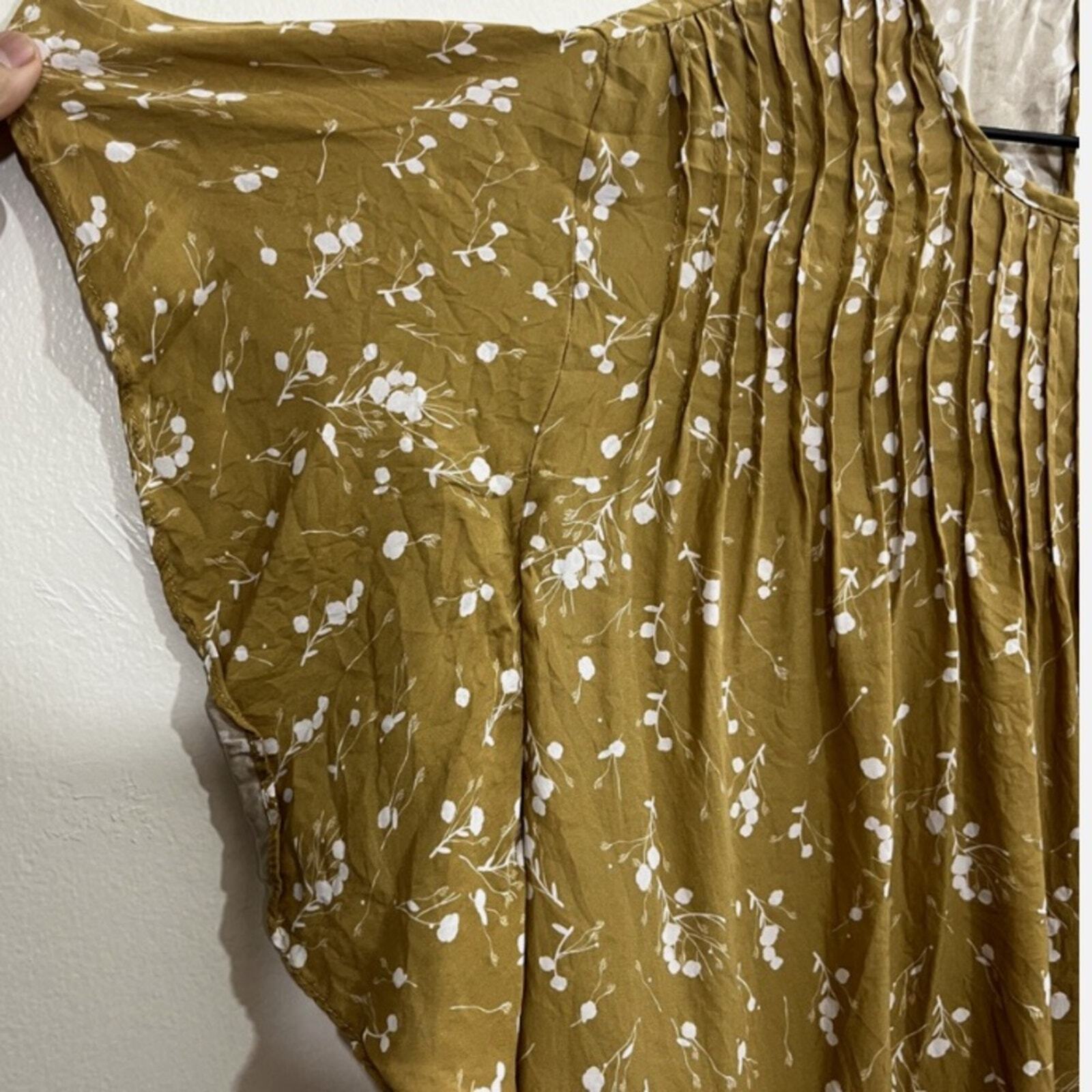 Women Blouse Top Silk Ditsy Floral Pleats Popover Flutter Sleeve Boho Prairie No stain No tears Size medium