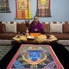 Namaste and Welcome to my Gallery!!! All of the paintings and arts in my gallery are originally handmade and hand-painted by my family members and other local artists who have been practicing their craft for over two decades. My father is Master Artist from Nepal with an experience of more than four decades; you can see some of his work in this Gallery. Also you can see some of the beautiful and soulful artwork of talented local artists from Himalayas. ~~ Buddha Shakti Thangka~~ Silk brocading is a process of framing a Thangka in traditional Tibetan style. The frame is made of beautiful silk fabric having rich colors and patterns. The silk fabric protects the edges of the Thangka, and also makes it easier to hang. A thin silk cover protects the painting when rolled, and may be gathered up to display the painting when hung on the wall. It is generally thought that silk brocade renders a Thangka more attractive and more religious. Buddha Shakti is deep blue in color, symbolizing the sky or emptiness of mind. Samantabhadri or buddha’s consort is white in color, symbolizing the aspect of the clarity of our mind. The male female of Adi Buddha in union depict the unity of emptiness and cognizance. Samantabhadri is completely nude and while not ornaments symbolizing that she is free from all thought constructs. It means that enlightenment can be realized only when we are free from thought constructs and one perceives the empty nature of the mind directly. [Size = 122cm x 94cm] Material Used: • Cotton Canvas • Natural Pigments and colors • 24k Gold leaf • Silk Fabric ~Excellent for meditation or home/office decor, ~Tibetan Yoga Wall Art ~Genuine 100% hand-painted from Himalayas Please feel free to contact me if you have any question regarding the painting.