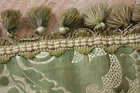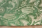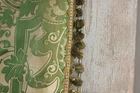 ~*~Hello and thank you for looking~*~ A wonderful find. This textile is a 19th century , French bed hanging of the most gorgeous , green silk brocatelle . The lovely golden beige ground is a silk with gentle twill weave. This textile dates c 1860-1880. The cotton trim runs along the bottom and this textile is backed in a natural toned cotton sateen. At the pleated top are the original rings for hanging . The silk on the front of this panel is pieced ( please see photographs). There is a heavy cotton batting between the two layers . Please view my other textiles for further matching pieces from this bed set ~*~ A wonderful and VERY rare find ~*~ ~*~ ( PR 11) MEASUREMENTS : This wonderful textile measures : 20 inches wide at the top , where it is pleated. The length is 97 inches long and the width is 25 inches at the bottom ~ CONDITION: This piece is in original as found, unwashed condition. This piece has light storage dust and storage dirt in places. There is fading along the trimmed side ~ The backing has storage marks ~This textile is in good condition for it's age however shows the wonderful signs of time and use often inherent in these antique textiles ~*~ ~ . ~ Please see my other Antique French fabric auctions by clicking View Sellers Other Items~*~