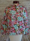 Silk Land Collection open front jacket size Large Multi Color Floral Full Zip Size Large Width 21 inches underarm to underarm Length 24 inches top to bottom 100% Polyester No stains or flaws Excellent used condition Email with any questions Sku# 7655