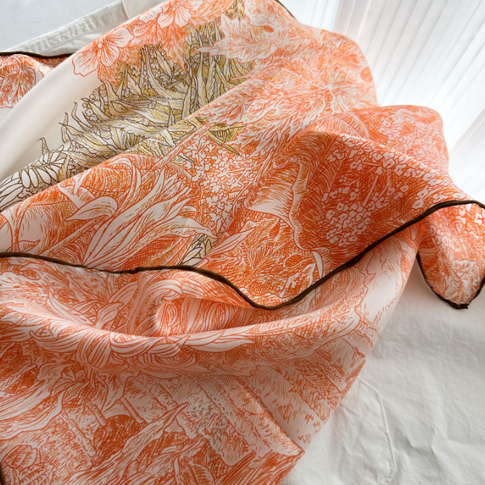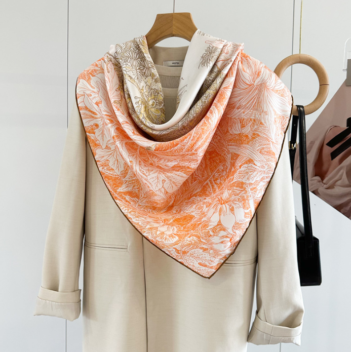 $ 26.4100% Mulberry Silk 53'' Square Scarf Women Neckerchief Wrap Orange wheels Print