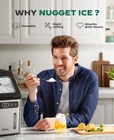 Custom Ice-Making Time: Our countertop nugget ice maker features a 12-hour timer that allows you to schedule ice production. Simply set the timer according to your schedule to have a fresh batch of ice fully made exactly when you need it. Large Ice Production: With a daily output of 45 lbs of ice, this pellet ice maker basket can hold up to 2.6 lbs of ice at a time and 2L of water in the water tank. Enjoy fresh ice at home instead of having to buy expensive bagged ice. The ice maker can make some ice in just 7 minutes if you need to chill an iced coffee or drink quickly. Chewable Nugget Ice: Indulge in softer, chewable nugget ice that rapidly cools and absorbs drink flavor better, unlike traditional ice cubes. Nugget ice is the perfect companion for specialty cocktails and cold beverages, as well as an excellent choice to chill food. Self-Cleaning Function: Automatic cleaning can be completed in 15 minutes to keep your ice tasting as fresh as possible. Regular cleaning extends the life of the ice machine and ensures consistent performance. Compact Dimensions: 15.98″ D x 9.65″ W x 15.98″ H. Intuitive Control Panel: The countertop ice maker features a touch interface for simple operation. Buttons are lit using four colors including blue for self-cleaning, green when the ice basket is full, red to alert for low water, and white while making ice. Easily monitor ice maker status throughout the day.