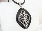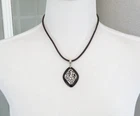 Beautiful Silpada Sterling Silver Black Pendant Perfect gift for someone special or for yourself. Please review all pictures, shipping/return details, listing details, and ask any questions before buying. I added the necklace - I believe it is leather. It is not sterling silver or Silpada. Measures approx. 2.28" with the bail x 1.28" widest. Necklace is approx. 18" long Marked for sterling silver and silpada inside the bail. Necklace is not marked Weight 18.4 grams combined