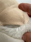 This is a Silver One Kids Lamb Pillow Pet plush, approximately 18” wide. It features soft polyester material throughout and is designed as a plush toy that unfolds into a pillow. Please note: this item is in fair used condition. There are several small stains, some general discoloration from use, and a visible tear under the chin area where the stuffing is exposed (see close-up photo). Great for repair, display, or casual use. Machine washable per the care instructions on the tag. Please review all photos carefully for condition details.