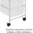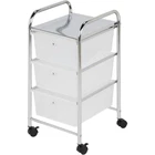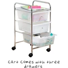 0% fabric Imported Plastic drawer storage unit with steel chrome-plated design Small storage unit for home office organization ideas and more Holds 11 pounds on tits op plate and 4.4 pounds per drawer Cart includes four wheels with two locking casters Rolling storage bin will not scuff or damage floors Dimensions: 12.99” L x 15.35” W x 25.59” H