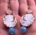 Cameo earrings with carnelian + Reaffirm the originality of the product. The earrings were handmade; No kind of treatment or treatment This is a handmade product The earrings were completely made in the homeland of Torre del Greco and have always been corals and cameos unique and hard to find earrings; "Unique" handmade object Really very beautiful and innovative attractive earrings. FASHIONABLE Technical features: Dipper in 925 silver 24k gold Female face SHELL Cornelian 22mm X 15mm Total set 50 mm It will be delivered in a convenient cardboard gift Also take advantage of the combined shipping. Multiple items pay for a single shipment VISIT MY OTHER ADS ALL ITEMS ARE MADE Torre del Greco Aggiungi alla lista dei preferiti per Promozioni Sconto Vendita