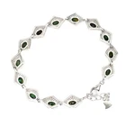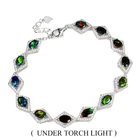 Solid sterling silver 925 stamped white gold coated bracelet featuring genuine natural mined oval cabochon african black opal gemstones with fire luster within each measuring 6mm x 4mm each individually set within a border of 1mm x 1mm bright white round cut faceted lab created zircon stones. The bracelet measures 17 to 19.7cm or 6.75 to 7.75inch using the integral extender chain. Total weight 11g / 8.2 carats GIFT BOXED Thanks for looking and please take time to view my other listings #17656