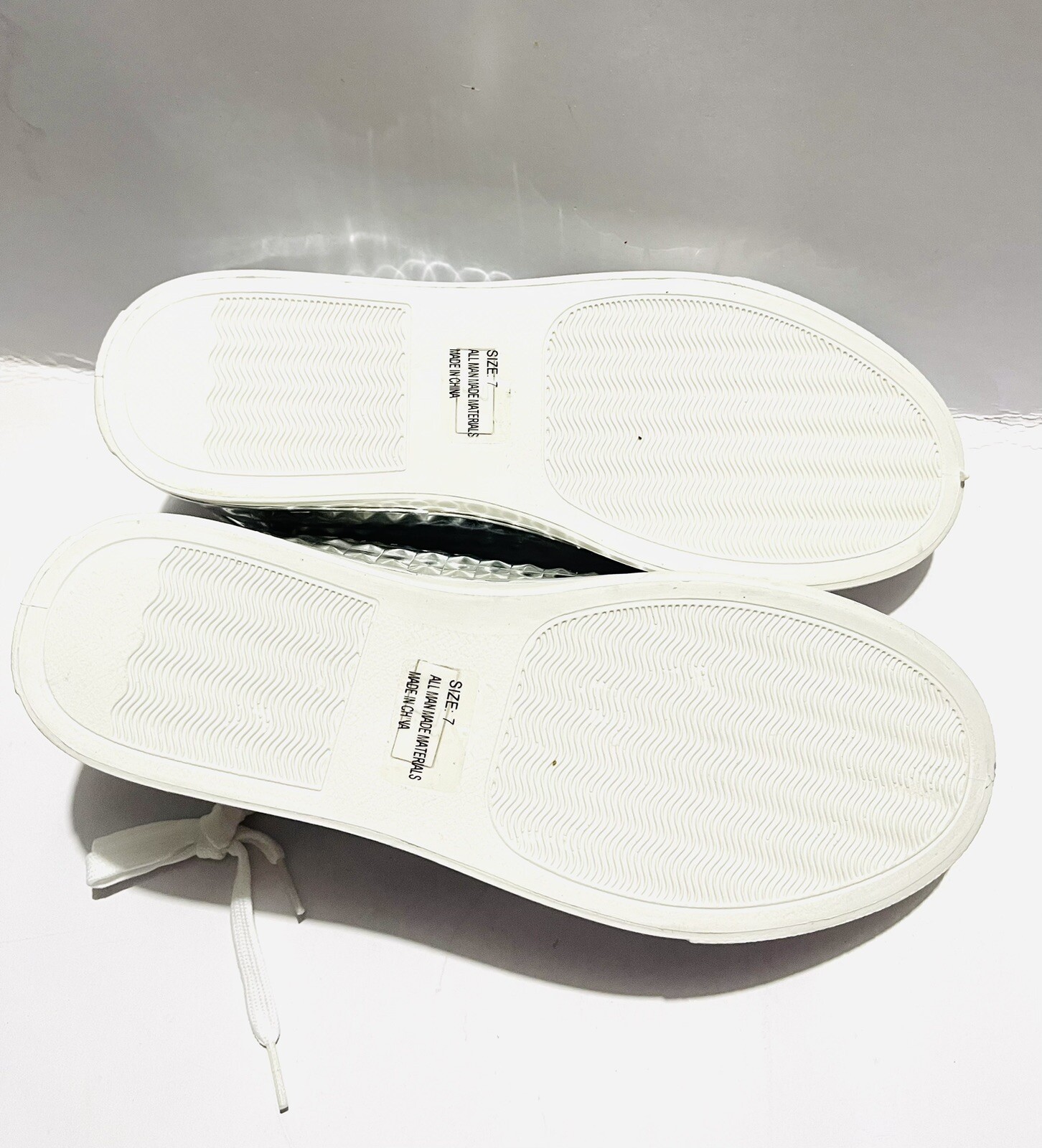 They are new. It has a small discoloration on front. See last picture. Less noticeable in reality your casual look with these festive gold tennis shoes from Cupid. Perfect for a night out or a day of running errands, these comfortable Converse Chuck Taylor All Star sneakers feature a shiny gold finish that will make you stand out in any crowd. The metal cleat type adds an extra touch of style to these athletic shoes, making them suitable for any occasion. With a women's US shoe size of 7, these sneakers are designed to fit perfectly and provide the support you need. The gold color and shiny theme will make you feel confident and stylish, while the comfortable design will ensure that you can wear them all day long. Add these Cupid tennis shoes to your collection and step out in style today!