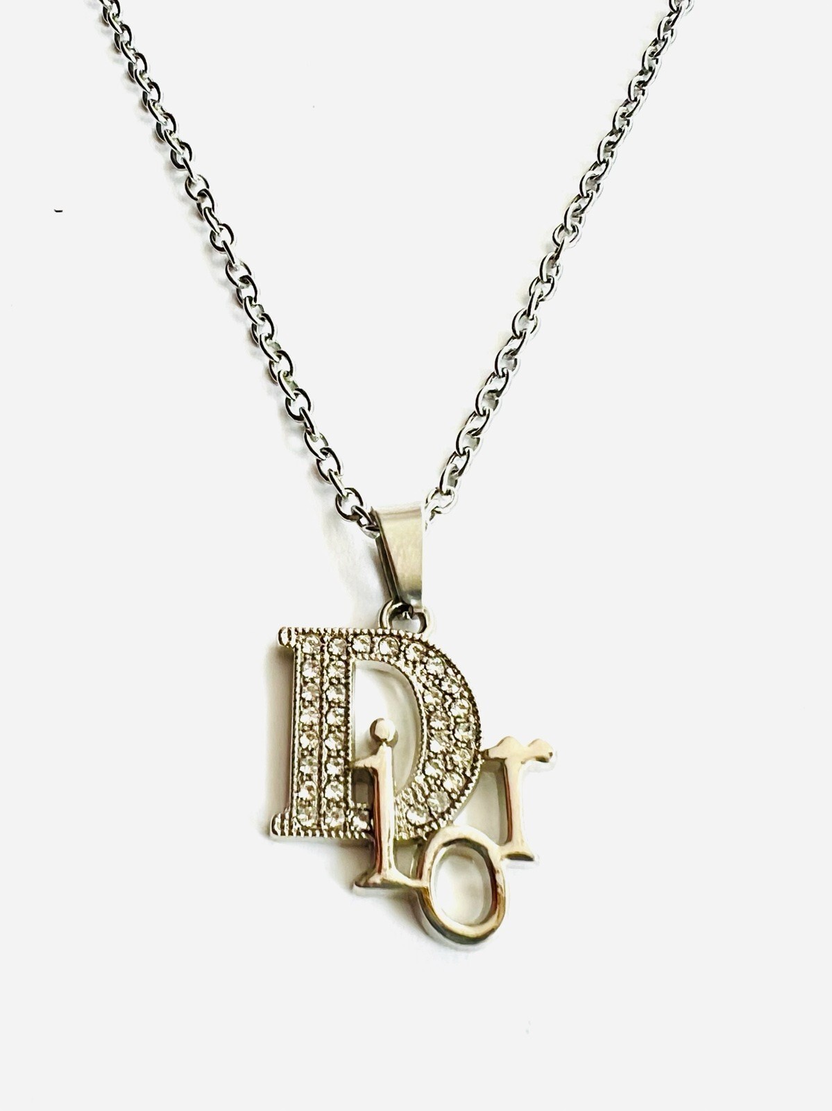 Silver Dior pendant with regular chain reworked Color : Silver S 925 stamped 🥰 Made of metal Pre - Owned , Looks Like New!