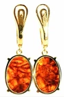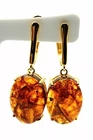 Solid sterling silver 925 stamped yellow gold coated drop earrings featuring a large oval cabochon genuine natural honey amber gemstone measuring 18mm x 13mm simply set. The earrings measure 36mm x 13mm and have a leverback fastening. GIFT BOXED Thanks for looking and please take time to view my other listings #15281 / 15307