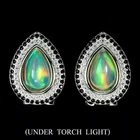 Solid sterling silver 925 stamped white gold coated stud earrings featuring a central pear cabochon genuine natural mined white opal gemstone with rainbow colours measuring 9 mm x 6mm surrounded by a row of 1mm x 1mm bright white round cut faceted lab created zircon stones which are then surrounded by a row of 1mm x 1mm genuine natural mined black spinel gemstones each measuring 1mm x1mm. The earrings measure 16mm x 12mm and have an english lock fastening. GIFT BOXED Thanks for looking and please take time to view my other listings #16216 / 16217