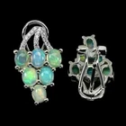 Solid sterling silver 925 stamped white gold coated earrings featuring genuine natural mined white opal oval cabochon gemstones each measuring 5mm x 4mm which have a rainbow of colour set with bright white round cut faceted lab created zircon stones each measuring 1mm x 1mm. The earrings measure 22mm x 12mm and they have an English lock fastening. GIFT BOXED Thanks for looking and please take time to view my other listings #15921
