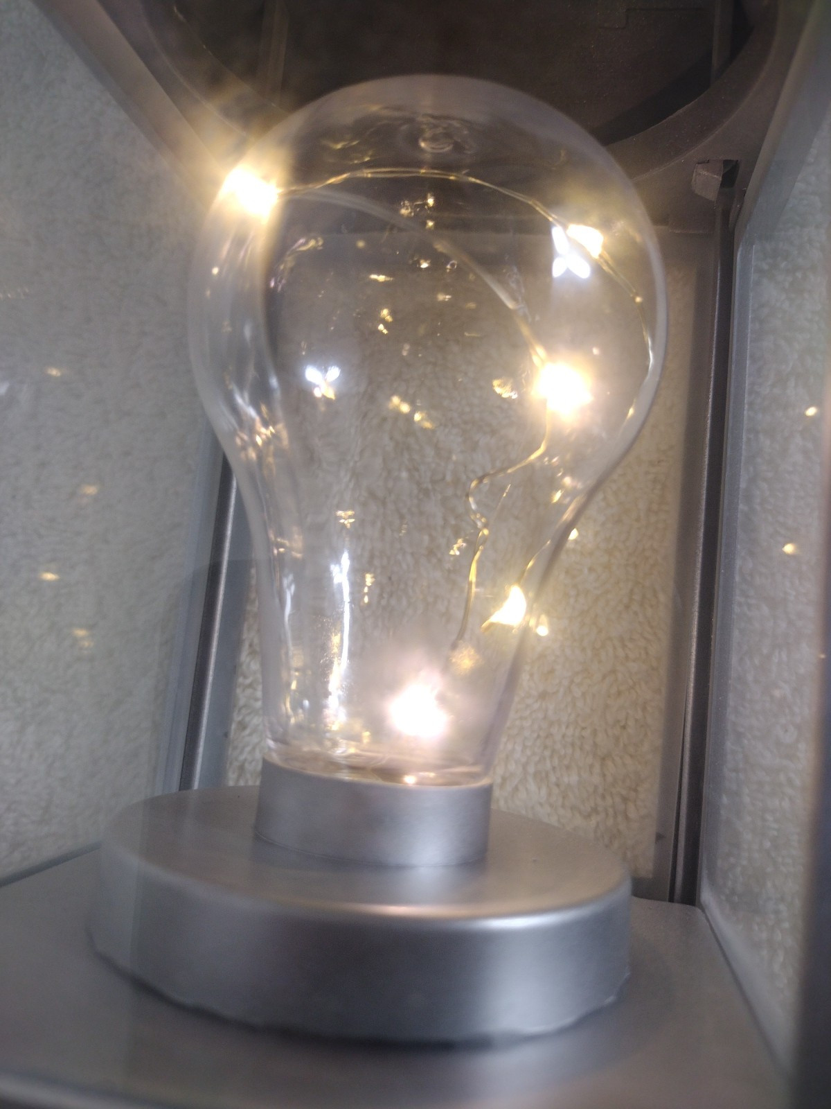 This is nice little light such a point item it adds A touch of beauty to any room you can even put it on a shelf and turn it on and turn it off and use it as a night light it has many many different purposes just choose your own use... It appears to have a string of lights possibly LED lights that look like they use very little power will probably last for hours, hours and hours possibly days I haven't had it that long.. can you be used for camping to keep the bears away from your campsite. Or at least attract bugs away from your campsite. , uses 3 AAA batteries for the power source. Not included. I only use them for display purposes and for testing as you can see it worked great.