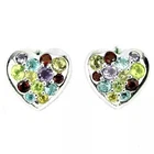 Solid sterling silver 925 stamped white gold coated heart shaped stud earrings featuring round cut faceted genuine natural mined gemstones - purple amethyst, yellow citrine, apple green peridot, red garnet and heated blue topaz gemstones - each measuring 2mm x 2mm and 3mm x 3mm set within the heart shaped design . The earrings measure 13mm x 12mm and have a post and butterfly fastening. GIFT BOXED Thanks for looking and please take time to view my other listings #6772