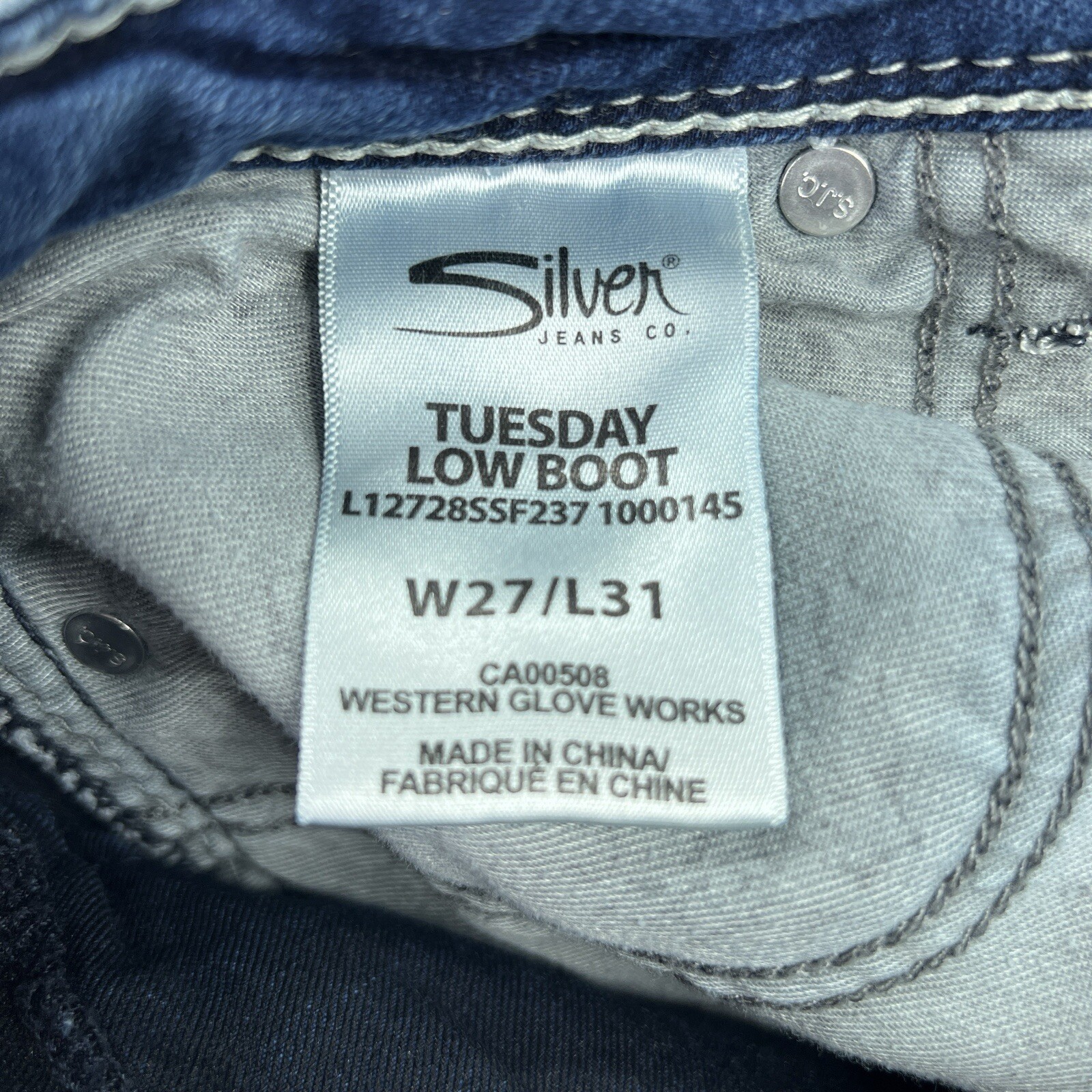 Silver Jeans Womens 27x31 Dark Wash Tuesday Low Bootcut Item is in Pre-owned condition. Jeans are slightly distressed Any flaws are listed in the condition and shown in the pictures Item measurements are in the photos, please compare sizes with your clothes before purchasing to ensure fit. ** I do entertain reasonable offers. Low ball offers or "what is your lowest price?" will be ignored or declined. Shipping and Returns I usually ship within 2 business days so you get your order fast! I accept returns for items within 30 days. Restocking fee may apply Please feel free to ask any questions you may have. I answer most questions as soon as possible and thanks for looking!