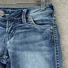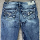 Love these Silver Jeans! The dark wash and subtle distressing give them a stylish, lived-in look, while the low bootcut and stretch make them super comfortable. The fit is true to size as described—check the measurements for the perfect match. Seller ships fast, and the pre-owned condition is just as shown. Great pair at a fair price!