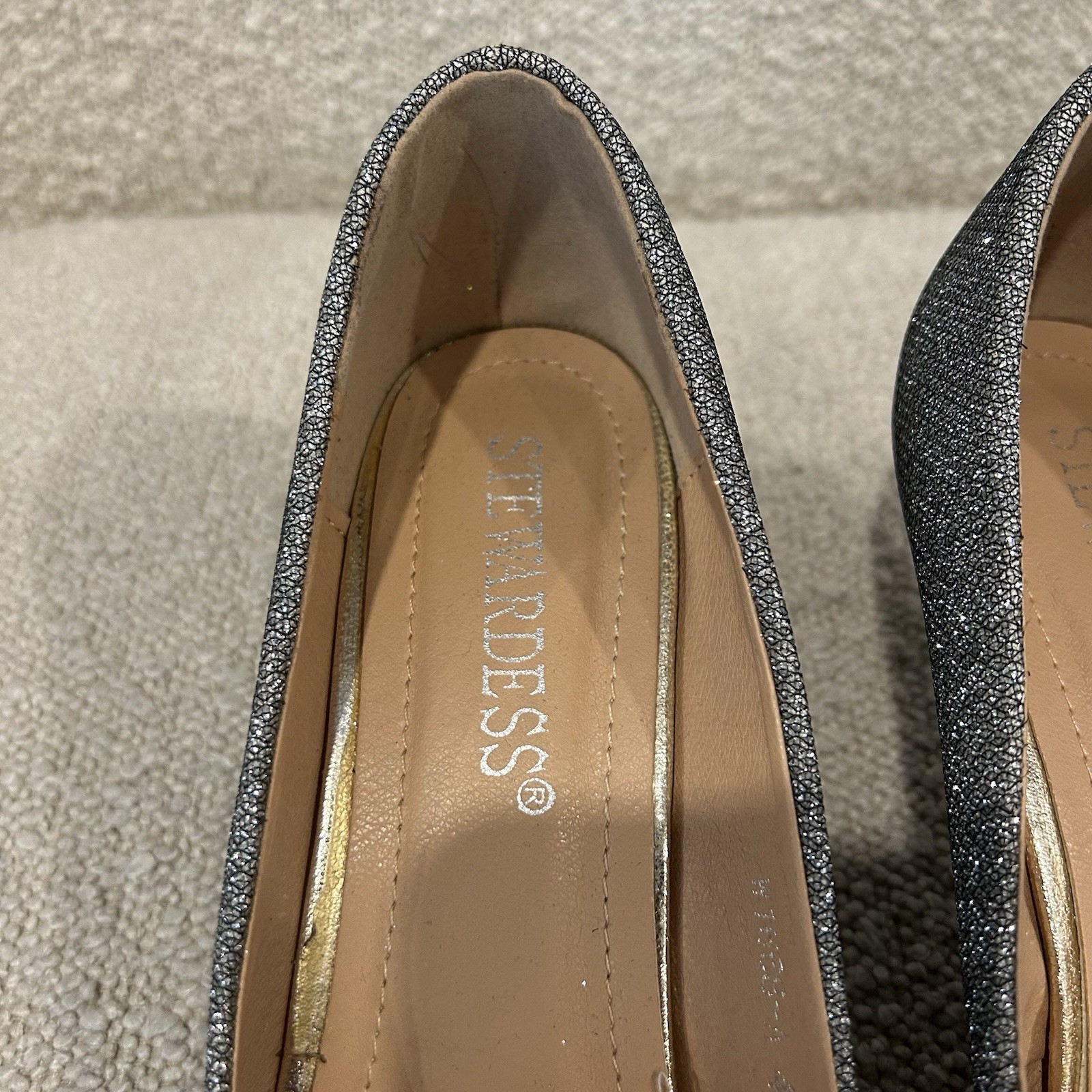 Country of Origin:ChinaStyle:PumpHeel Style:KittenBrand:UnbrandedUS Shoe Size:9.5Theme:MetalColor:SilverAccents:GlitterUpper Material:SyntheticType:HeelDepartment:Women