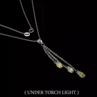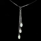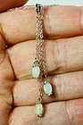 Solid sterling silver 925 stamped white gold coated pendant featuring genuine natural mined oval cabochon white opal with fire flashes gemstones each measuring 6mm x 4mm each individually set within a sterling silver filigree design cup and suspended on sterling silver chain at varying lengths. The pendant measures 55mm x 15mm including bale and comes complete with a free 18 inch solid sterling silver 925 chain. GIFT BOXED Thanks for looking and please take time to view my other listings #17456
