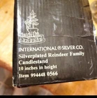 Silver Plated REINDEER family Candle Holder Candelabrum - Christmas Decor. Has original box.