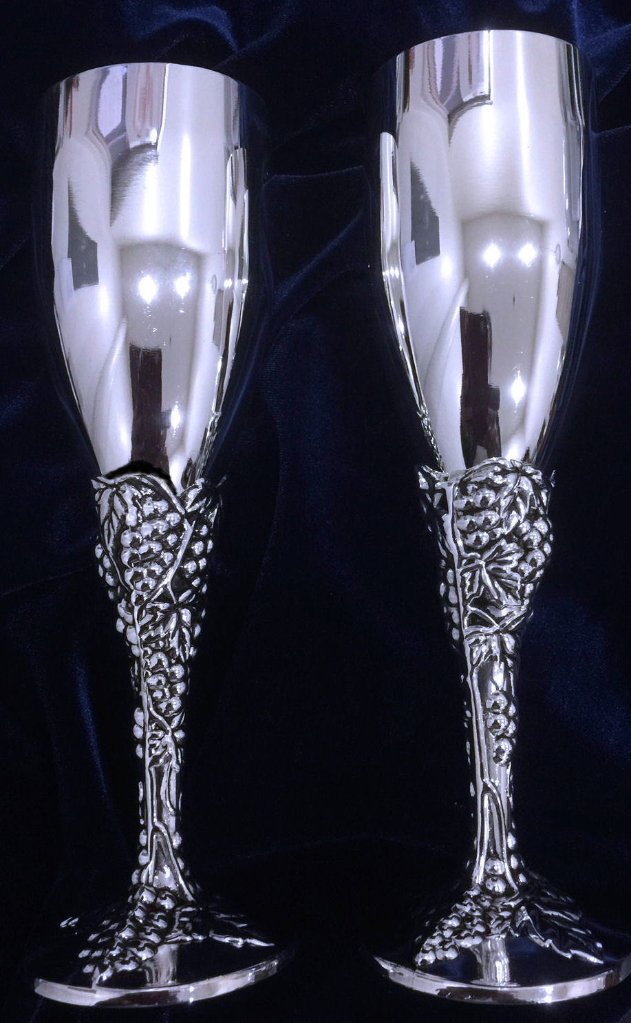 These champagne flutes are absolutely stunning! The antique silver finish gives them a luxurious vintage feel, and the grape detailing adds such a unique touch. Perfect for weddings, parties, or any special celebration—they make every sip feel elegant. Love that they’re handcrafted and shipped so quickly! Highly recommend for anyone looking to elevate their toast game.